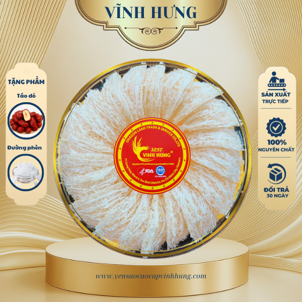 - Mỗi sản phẩm yến sào Yến Sào Vĩnh Hưng đều đạt tiêu chuẩn xuất khẩu, đánh dấu cam kết về chất lượng và độ an toàn trong từng sản phẩm.